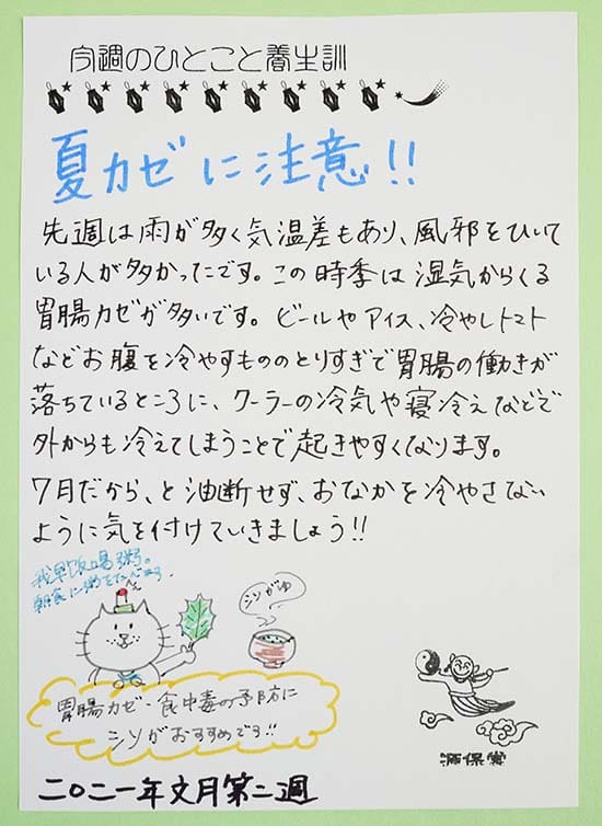 「夏カゼに注意!!」2021年7月文月・第2週