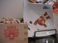 お豆の力と団扇の力で、患者様の邪鬼を払っていただこうと思います。