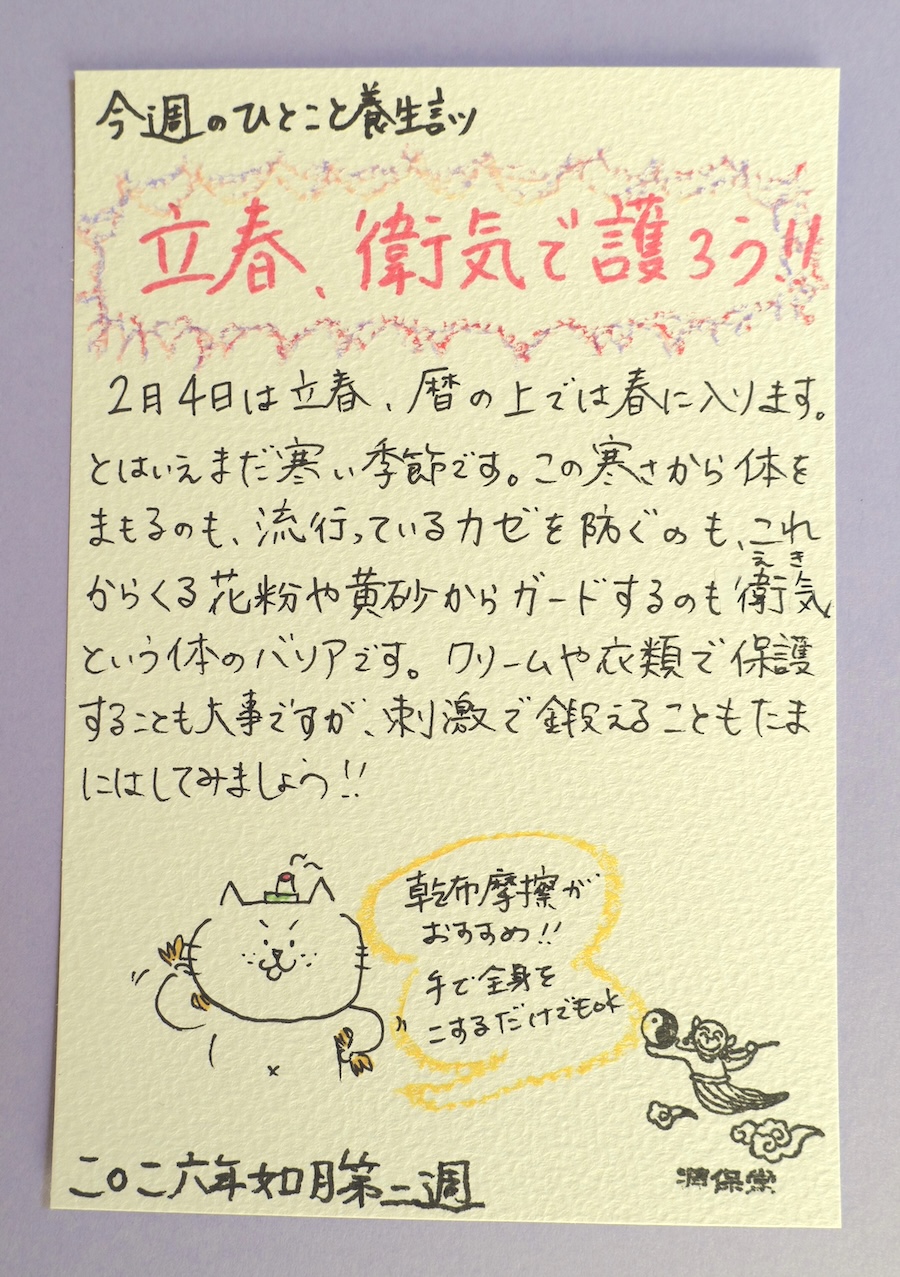 【今週のひとこと養生訓】立春、衛気で護ろう!!――冷え・風邪・花粉・黄砂の季節の「体のバリア」を育てる