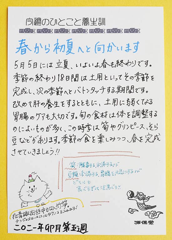 【今週のひとこと養生訓】「春から初夏へと向かいます」