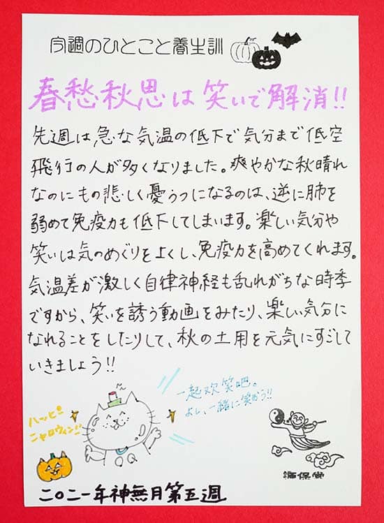 【今週のひとこと養生訓】「春愁秋思は笑いで解消!!」2021年10月神無月・第5週