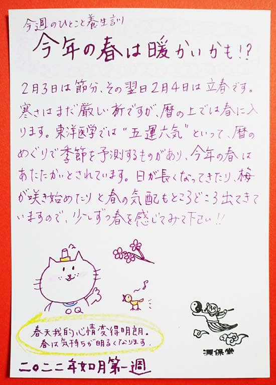 【今週のひとこと養生訓】「今年の春は暖かいかも!?」2022年2月如月・第1週
