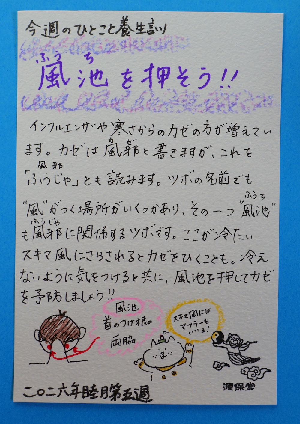 【今週のひとこと養生訓】『風池を押そう!!』
